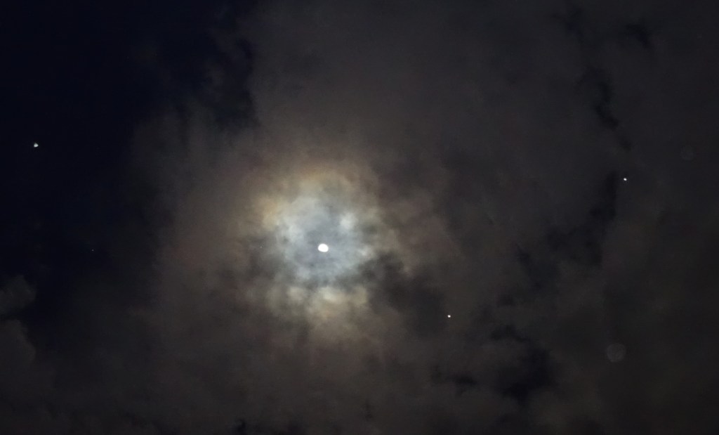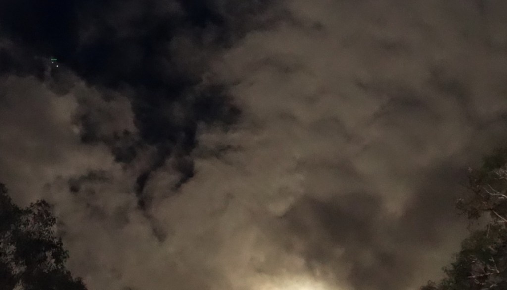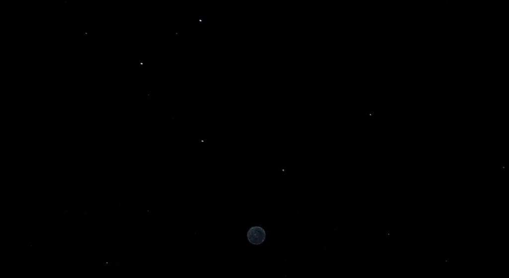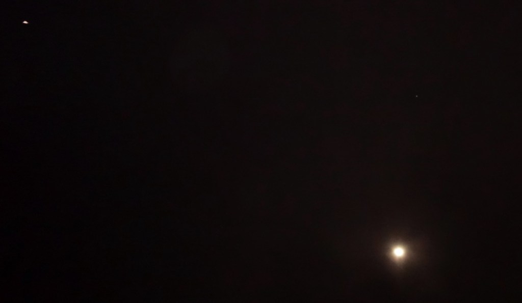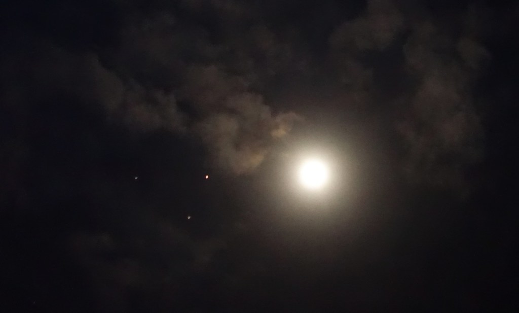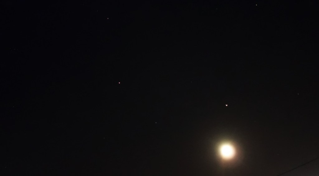 Photo taken on November 26th 2020, Darlington, Western Australia (a light emanation from Mars, followed by two ships in formation with Mars, near the Full Moon).