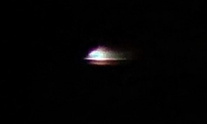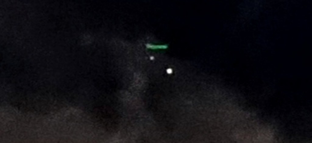 Two photos taken on June 6th 2019, Darlington, Western Australia (one second apart, of the same briefly visible ship. In the second frame, only the upper portion is lit up).