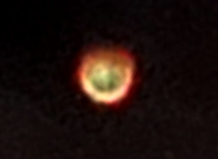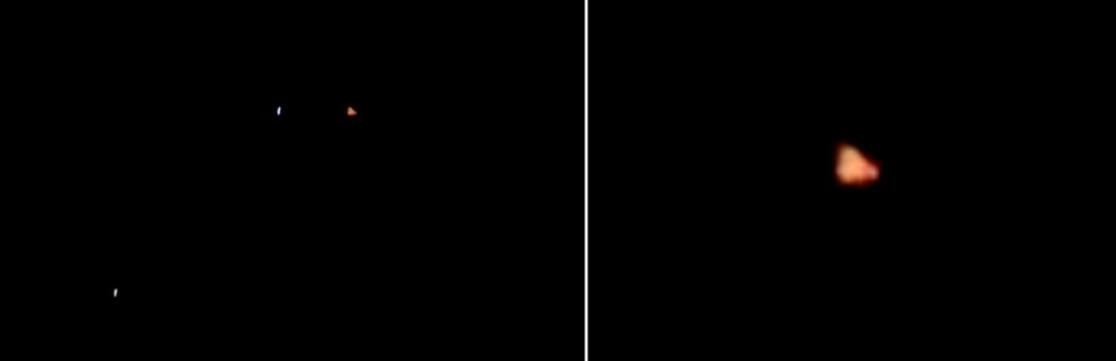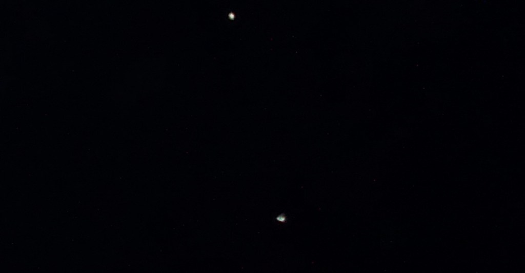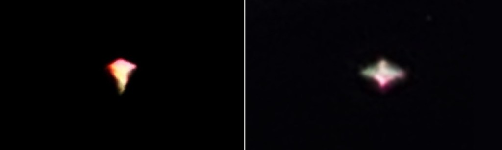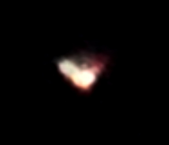 Photo taken on March 3rd 2020, Darlington, Western Australia, triangular ship near Sirius and Procyon (with figure above, see Light Beings page).