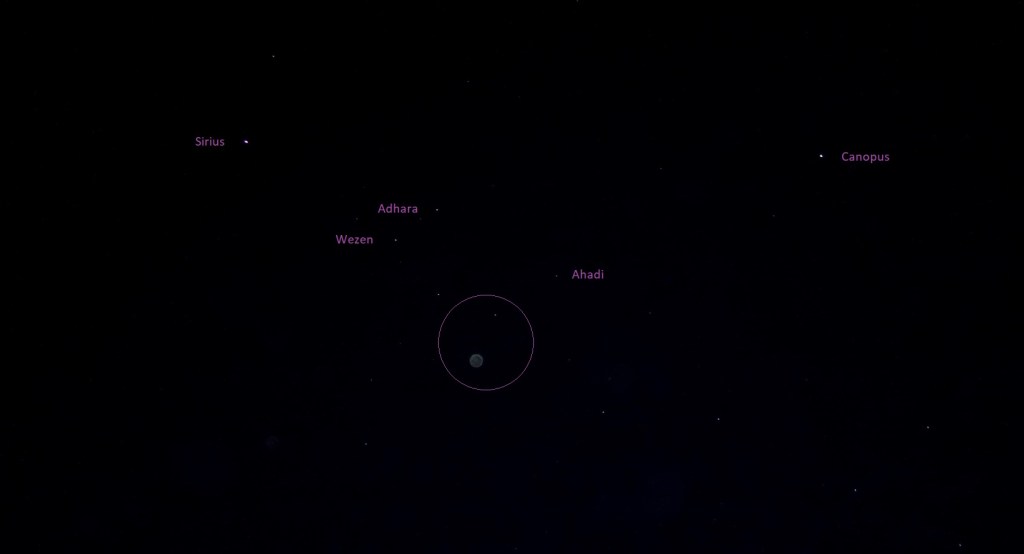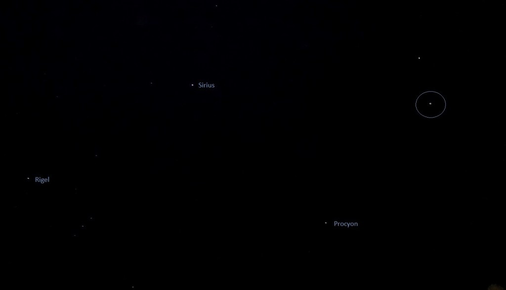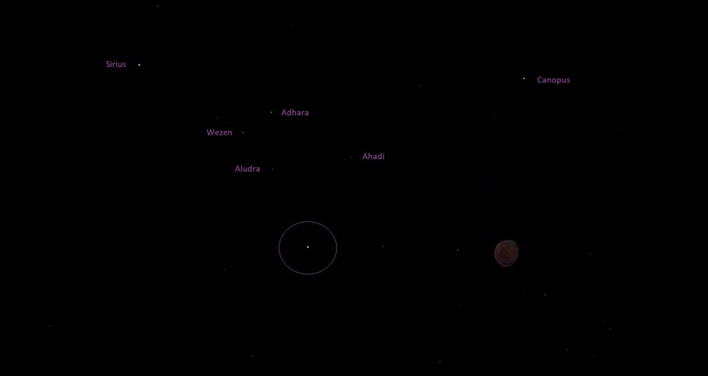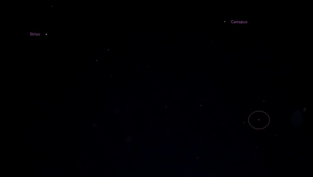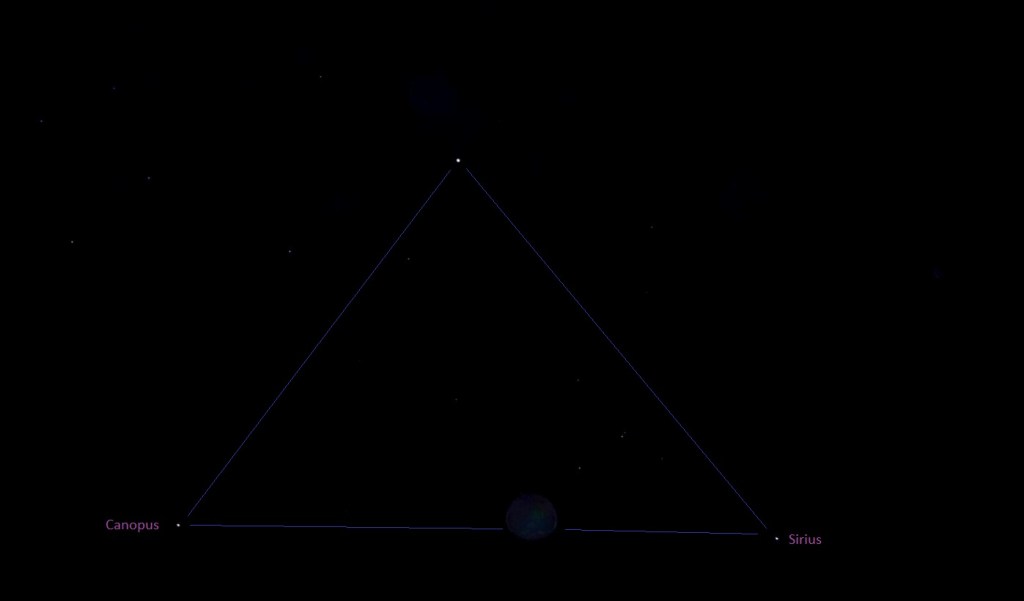 Photo taken on January 20th 2023, Mandurah, Western Australia (red triangle flashing next to the star Adhara, with Sirius and Canopus at left and right).