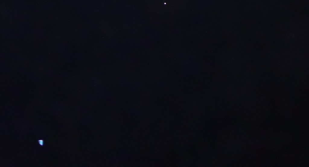 Photos taken on December 9th 2022, Mandurah, Western Australia (ship flashing above the Moon, with Mars to the left).